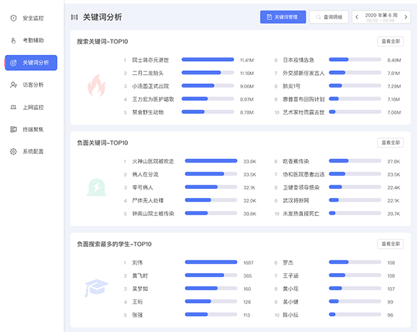 利用网络搜索信息和校内信息平台数据,及时发现和引导学生舆论走向,对异常苗头及时告警,增强学生自我防病意识和社会信心。