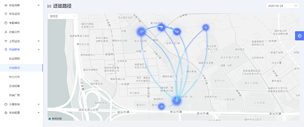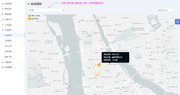 对人员定位并记录轨迹,回放指定人员的轨迹,对于新确认疫情人员可以根据运行轨迹做进一步接触人员排查。