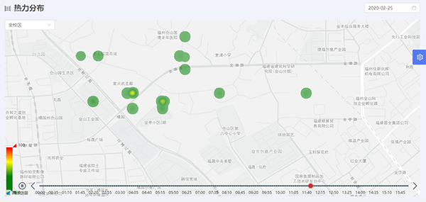 利用校内无线网络实现无线定位,描绘人员热图,对于不正常聚集第一时间告警,避免疫情扩散;还可快速定位指定人员位置,并设置电子围栏,避免隔离人员非法外出。